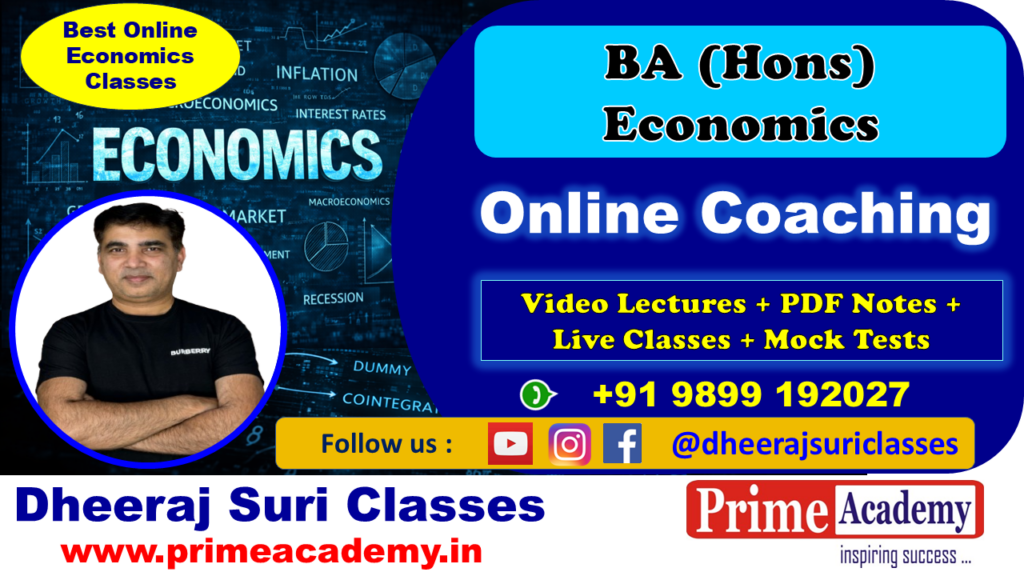 Join Best Online Coaching for BA Economics (Hons), Delhi University 2026Ā at Prime Academy under the guidance of our highly experieced teacher Mr. Dheeraj Suri, (an expert faculty teaching Economics for over 25 years).